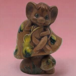Spiritual Renewal Psychedelic 70s Figurine Whimsical Mouse Chilling on Mushroom