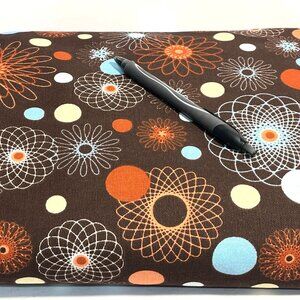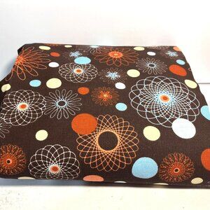 Ideal for quilting, crafting, or sewing projects, this cotton fabric features a vibrant retro floral design on a durable brown backdrop.