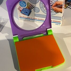 Unleash creativity with the Design Set. Featuring a vibrant purple and orange board, this set is perfect for young artists. Includes colorful markers for endless design possibilities.