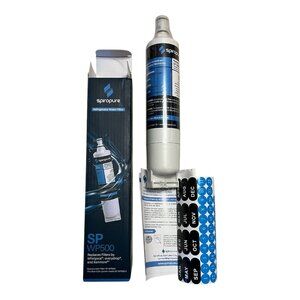 Keep your water fresh and clean with this genuine Spiropure SP-WP500 refrigerator water filter replacement. Designed to fit select Whirlpool, Kenmore, and other compatible refrigerator models, this filter uses advanced coconut shell carbon filtration to reduce chlorine, lead, odors, and unpleasant tastes from your water and ice.