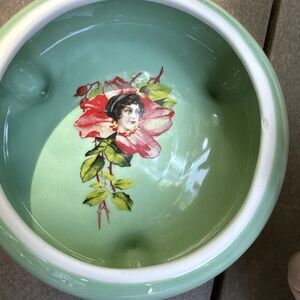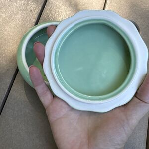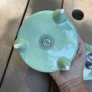 Tiny chip where it is t glazed on the inside rim (doesnt effect the look very hard to see)
