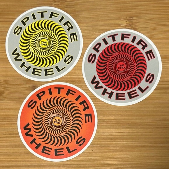 New! 3 pieces! Spitfire wheels skate brand Color Glossy about 3 inches Pop culture/ bands/ skateboarding/ tattoo style