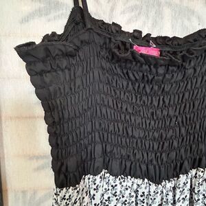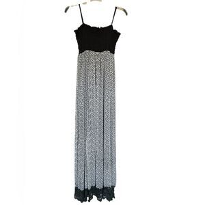 Splash Floral Lace Hem Spaghetti strap Shirred Bodice Sheer Fully lined Maxi Dress M