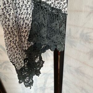 Splash Floral Lace Hem Spaghetti strap Shirred Bodice Sheer Maxi Dress M