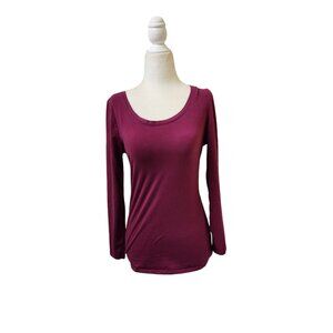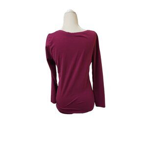 Splash Fusia Pink Purple Long Sleeve Top Sexy Scoop Neck Form Fitting Large