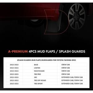 A-Premium Set of 4PCS Mud Flaps Splash Guards Mudguards Mudflaps with Hardware Kits Accessories Compatible with Toyota Tacoma 2023 2024 Pickup, Before 2024/4, with Fender Flares, Front & Rear LH RH