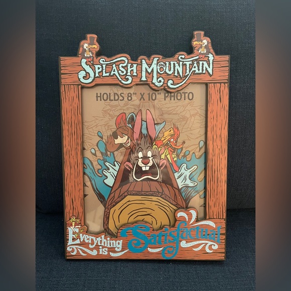 Splash Mountain themed photo frame. Holds 8" x 10" photo. Features colorful cartoon design. “Everything Is Satisfactual”