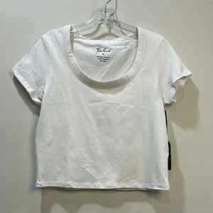 Elevate your summer wardrobe with this brand new Splash white crop T-shirt in size XL. Made from a comfortable blend of 95% cotton and 5% spandex, this short sleeve scoopneck top is perfect for casual outings or lounging at home. The stretchy fabric ensures a flattering fit for all body types, while the classic white color makes it easy to pair with any bottoms. Whether you're running errands or meeting friends for brunch, this versatile T-shirt is a must-have staple in your closet. Machine washable for easy care, this top is both stylish and practical. Add this chic piece to your collection and stay on-trend all season long!