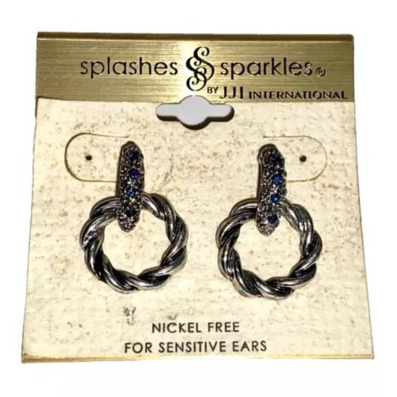 Splashes and Sparkles by JJ International Nickel Free earnings for sensitive ears. Brand New. Silverstone with blue stones.
