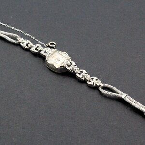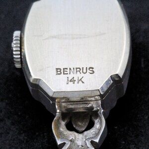 Immerse yourself in vintage elegance with this ladies' wristwatch crafted by Benrus in the 1960s. The watch is beautifully crafted from 14k white gold, with a band adorned with sparkling diamonds that add a touch of luxury and sophistication. Featuring a square-shaped face, this watch is in excellent working condition, reliably keeping time. Marked with "14K GOLD" and "BENRUS" for authenticity, the mesh chain and clasp are made of 10k gold-filled material and are clearly marked. This timeless piece is a testament to classic design and quality craftsmanship, making it a standout addition to any watch collection.