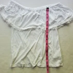 Splendid Senorita Off Shoulder Top. White. Size XS. Gently Used. Measurements taken layed FLAT. Pit to pit - 12 inches, Length - 16 inches. PLEASE ZOOM IN ON ALL PHOTOS BEFORE PURCHASE. Please ask any questions