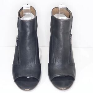 Splendid 9 M Janet Leather Peep-Toe Booties Chunky Heel Shootie Slate Taupe Grey
