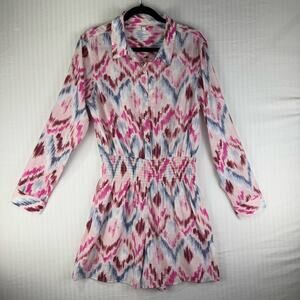 Splendid Amalia Romper Watercolor Printed Long-Sleeve Button Front Size Large