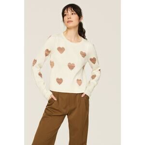 It's made from our Cashblend fabrication and topped with a dainty puff shoulder and metallic hearts for a sparkly sheen. It's playful, it's effortless, and yes-- it's really really cozy.