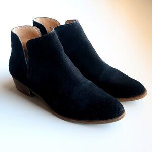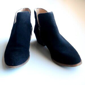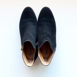 Splendid Anthropologie Black Suede Almond Toe Block Heel Ankle Boots Booties 7.5