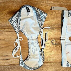 Splendid Avalon Eyelet Bikini Top & Matching Side Tie Bottoms Gray & White Sz S