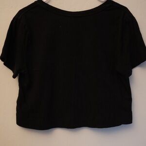 This Splendid t-shirt features a chic boxy crop design with short sleeves, perfect for a relaxed and stylish look. The solid black color and soft fabric make it a versatile addition to any wardrobe, offering both comfort and effortless style.