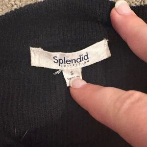 Splendid Black Crew Neck Sweater with Puff Sleeves Size Small