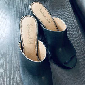 Splendid Black Leather Slide Heels, size 9.5 - leather uppers, black heels with peep toes.