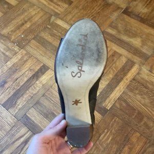 In excellent used condition Splendid Black Leather and Wood Strappy high Heels Size 6, the heel is 4.5 inches tall. from a smoke free home.