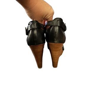 Splendid Black Leather Wedge Peep Toe Heels
