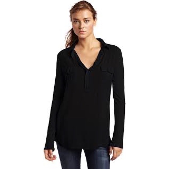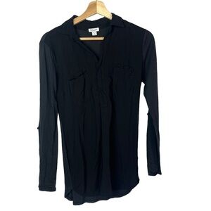 Splendid Black Mixed Media 3/4 Sleeve Henley Top XS