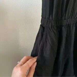Black Romper. Open back detail. Has pockets.