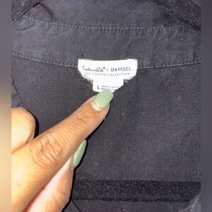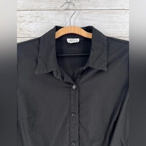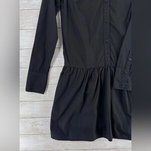 Elegant black shirt dress. Features long sleeves and a relaxed fit. Perfect for any occasion. Inventario217
