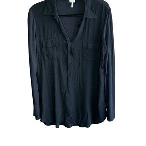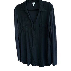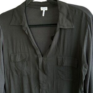 Splendid Black Shirting Long Roll up Sleeve Collar Top Tee Size Medium