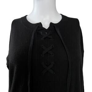 Splendid Black Viscose Cashmere Blend Lace Up Neck Sweater Small