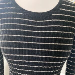 Elegant black dress with white stripes. Long sleeves. Perfect for any occasion.