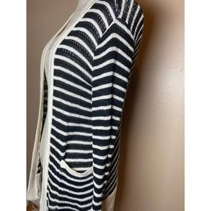 Splendid Black and White Striped Open Front Cardigan with Pockets Size Small