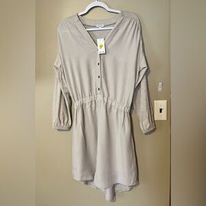 Blaine Mini Dress In Fawn With V-Neck And Elasticized Waist And Cuffs