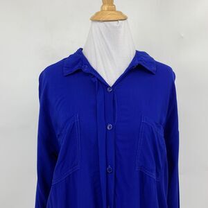 Splendid Blouse Womens M Medium Royal Rayon Voile Button Up Pocket High Low Top