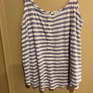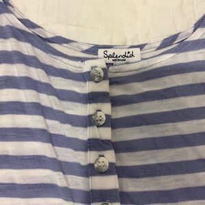 Splendid Blue and White Striped Tank Top Camisole Made in USA Size Medium. In a lightweight 50% polyester/50% rayon blend. Machine washable. Extra button.