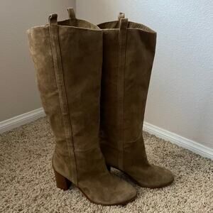 Taupe Brown Suede Leather Knee High Boots Splendid Size 10