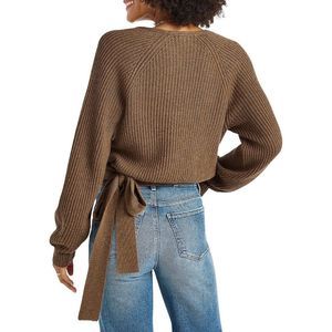 Reposhing this super cozy wrap sweater. Loved it, but ready for something new. Viscose/nylon/cotton blend.