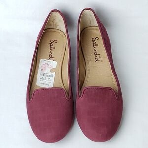 Splendid Burgundy Vegan Suede Crocodile Embossed Flats
