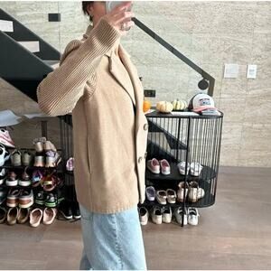 Splendid Camel Double Breasted Sweater Jacket MEDIUM Felted Boxy Coat Wool $178