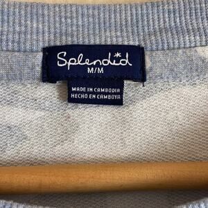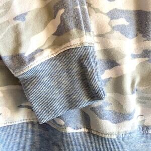 Splendid Camo pullover Size medium. Camo is variations of soft blue, grey and white. Light wear, some piling but not stains, holes etc. Per tag 95% polyester 5% elastane machine wash cold, tumble dry low.