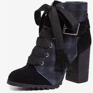 Splendid Celine High Heeled Suede Ankle Boots Black Gray Plaid SZ 9.5 NWOT