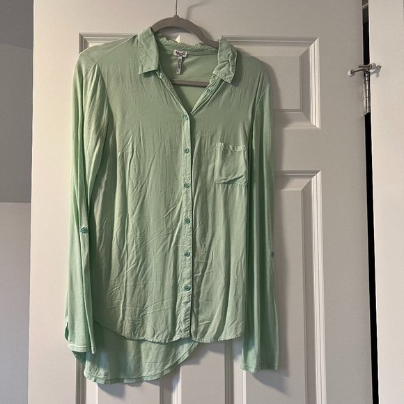 Splendid Collared Shirt Self: 100% Rayon Contrast: 50% Modal 50% Cotton