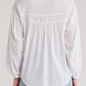 Chic white blouse with ruffle details. Perfect for versatile styling.