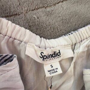 Fabric: Rayon/linen blend feel (Splendid’s Myla stripe is typically 75% rayon/22% linen/3% elastane)