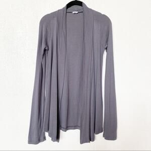 Cool grey open cardigan from Splendid. No closure, long sleeve. Two very small bleach stains on the right side near the opening.