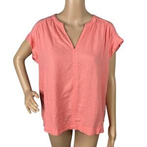 Splendid Coral Pink V-neck Oversized Cap Sleeve Linen Blend Top SZ S