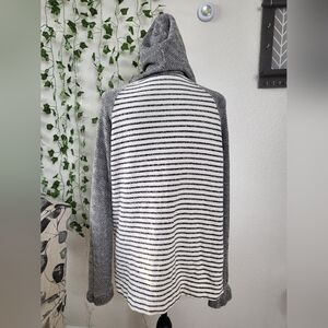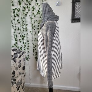 Splendid Cotton Blend Tie Neck Lace Up Textured Contrast Pullover Hoodie