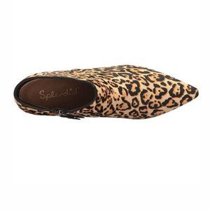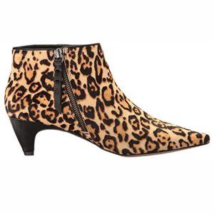 A flirty kitten heel balances the sleek, pointy toe of a leopard-spotted calf-hair bootie made with a comfortably cushioned footbed.