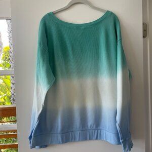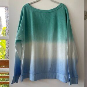 Splendid Dip Dye Ombre Thermal Waffle Knit Pullover Shirt, XL