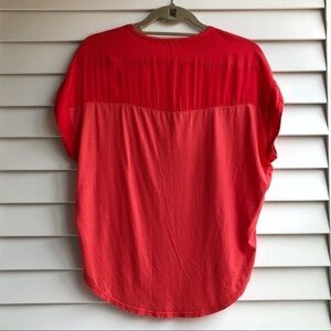 Splendid Dolman Pocket Tee in red. A low-slung neckline, banded dolman sleeves and sporty chest pocket add to the relaxed vibe of a slouchy tee. Curved bottom hem. Slightly longer in back. Rayon material on front and top back and Cotton/modal on lower back. Worn but in excellent condition with no visible signs of wear. Approx. 24” long (front), 26.5” long back and 21” across from armpit to armpit.